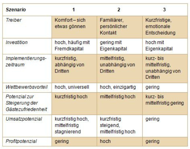 Identifizierte Potenziale sind die Treiber Authentizität, familiäre Atmosphäre, familiärer, persönlicher Kontakt, Komfort – sich etwas gönnen, kurzfristige emotionale Entscheidungen.